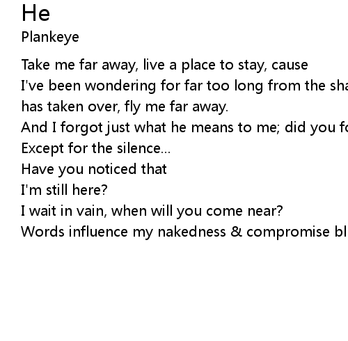 | I've been wondering for far too long from the shadows of your wings, complacency has taken over, fly me far away. | |
