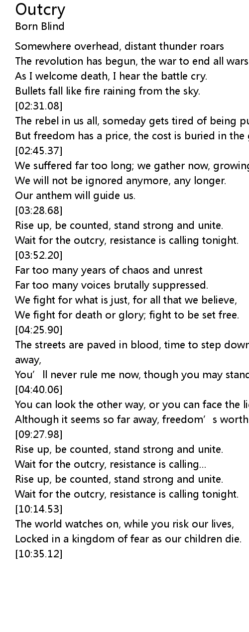 | [09:40.77] | Wait for the outcry, resistance is calling... |