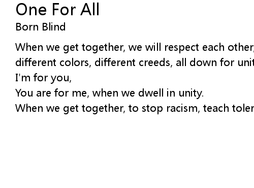 | When we get together, we will respect each other, honor differences, unity, different colors, different creeds, all down for unity. | |