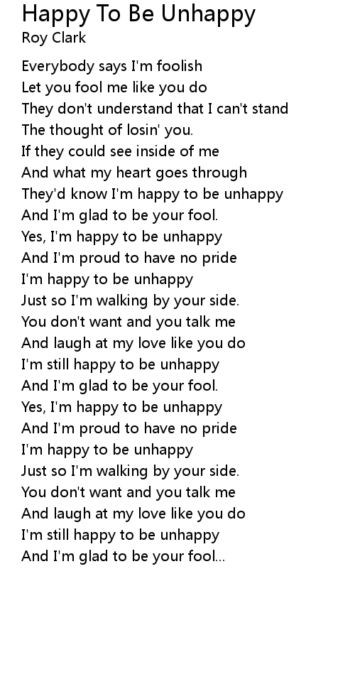 They'd know I'm happy to be unhappy |