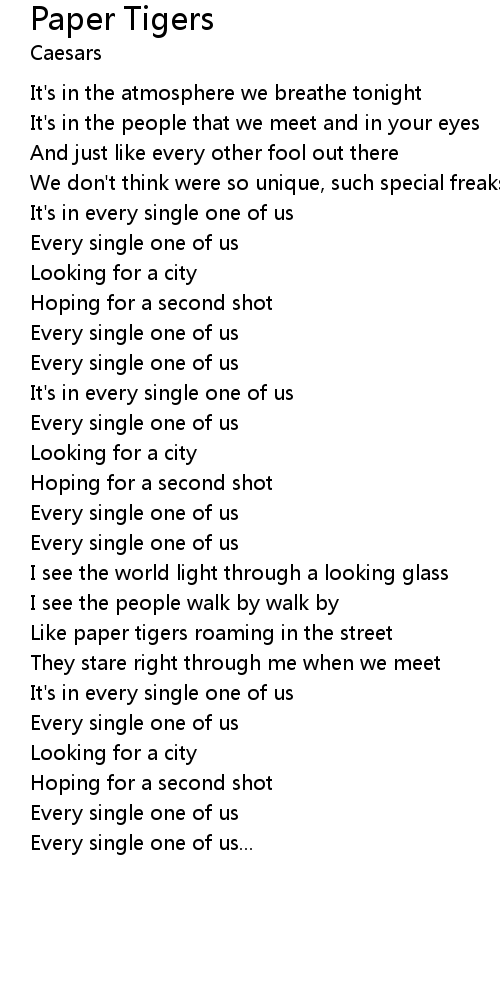 Like paper tigers roaming in the street |