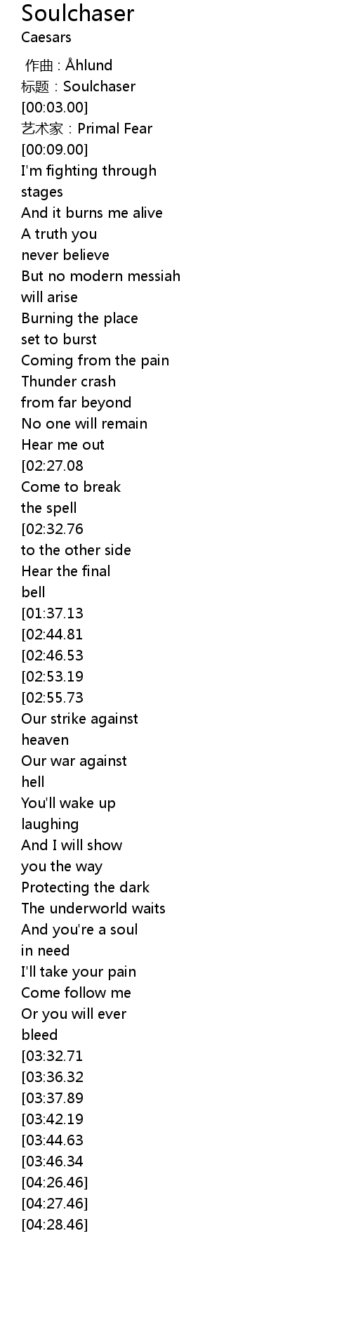 | [00:00.00] | 标题:Soulchaser |