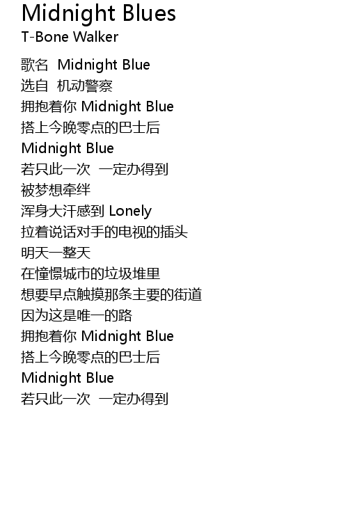 | [00:01.00] | 拥抱着你 Midnight Blue |