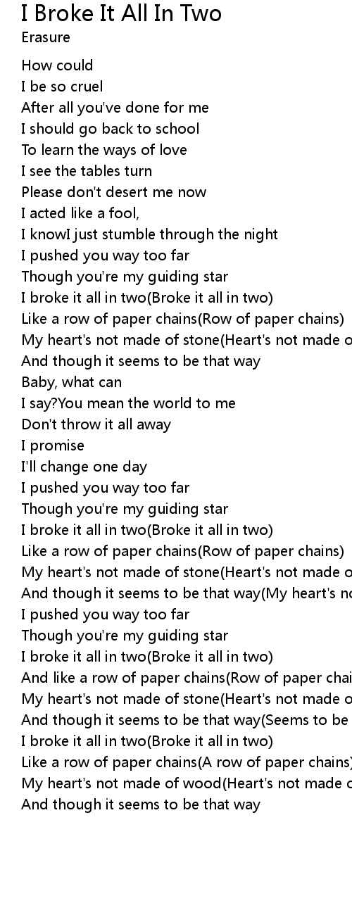 | I broke it all in two(Broke it all in two) | |