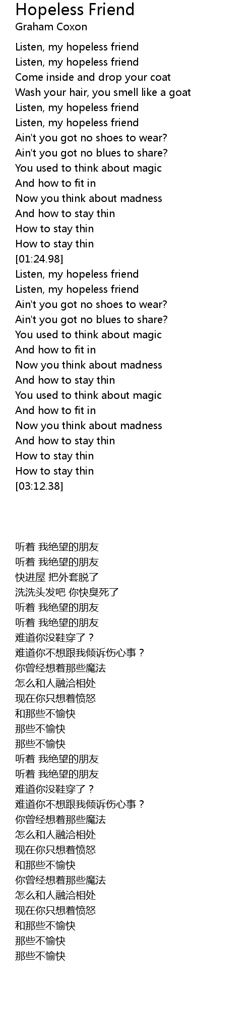 Listen, my hopeless friend |