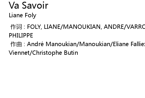 | [00:00.000] | 作词 : FOLY, LIANE/MANOUKIAN, ANDRE/VARROD, OLIVIER/VIENNET, PHILIPPE |