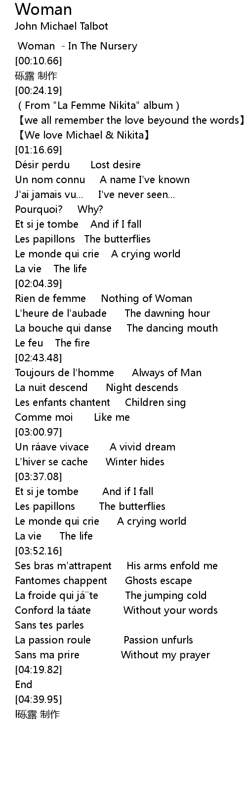 | [00:00.00] | Woman - In The Nursery |