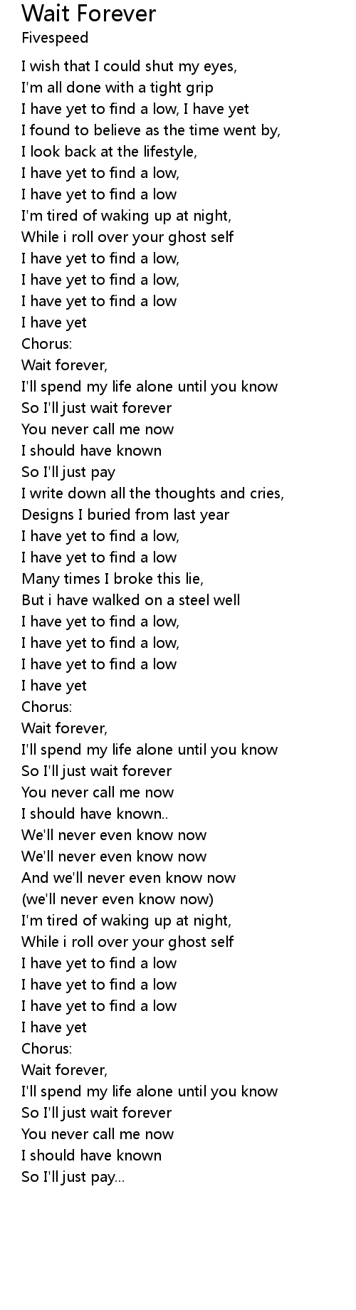 So I'll just wait forever |