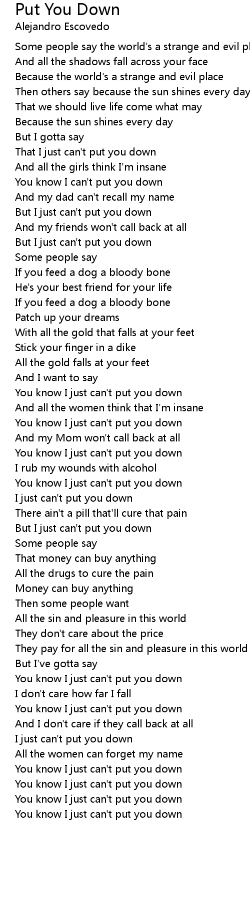 Put You Down Lyrics