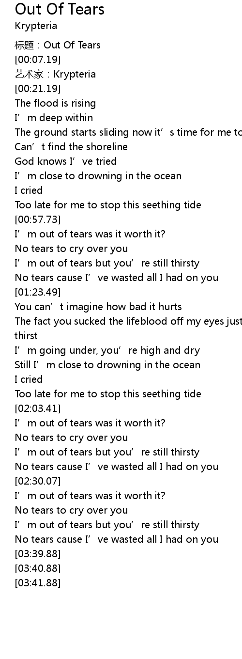 | [00:00.00] | 标题:Out Of Tears |