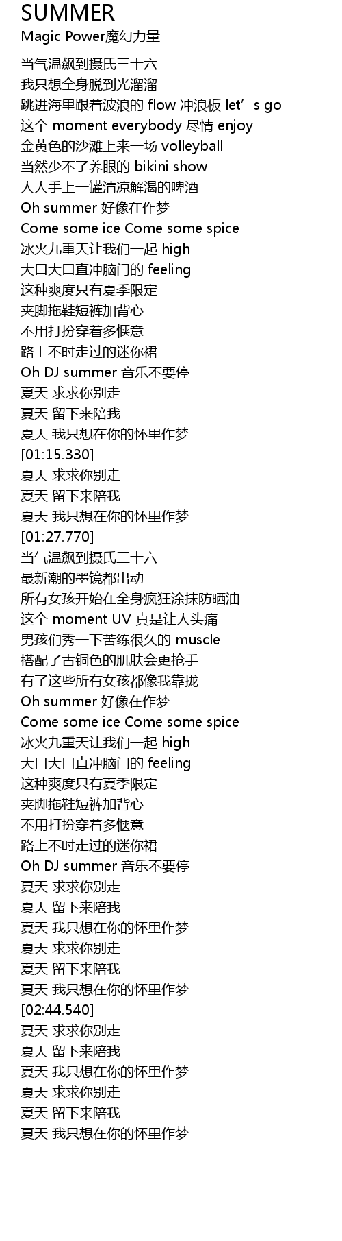 | [02:19.680] | Oh DJ summer 音乐不要停 |