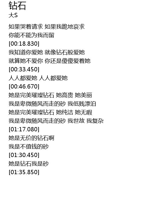 | [01:30.750] | 她是钻石我是砂 |