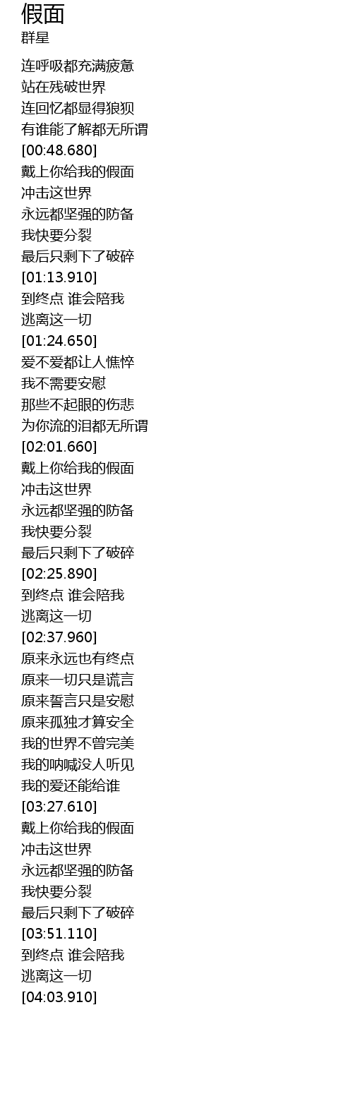 | [00:51.690] | dài shang nǐ gěi wǒ de jiǎ miàn |