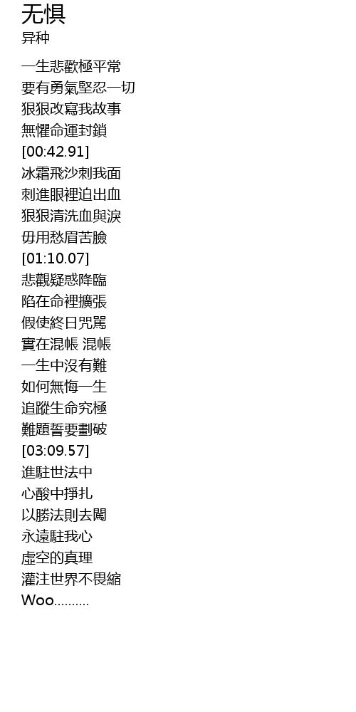 | [00:38.66] | wú jù mìng yùn fēng suǒ |