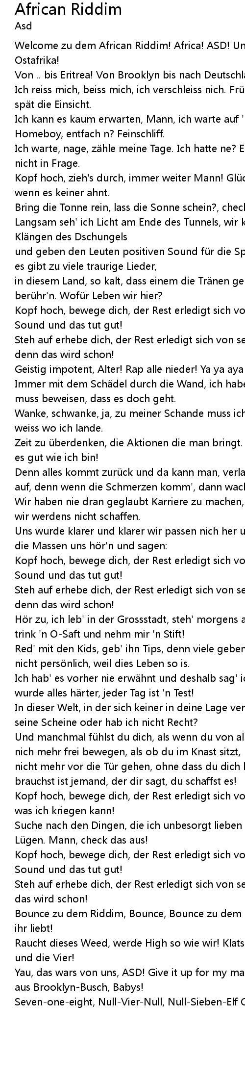 | Welcome zu dem African Riddim! Africa! ASD! Und nachher pr sentieren wir Ostafrika! | |