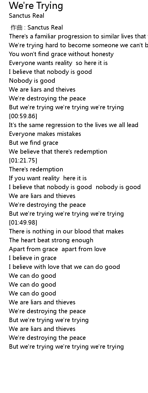 | [00:52.94] | But we' re trying we' re trying we' re trying |