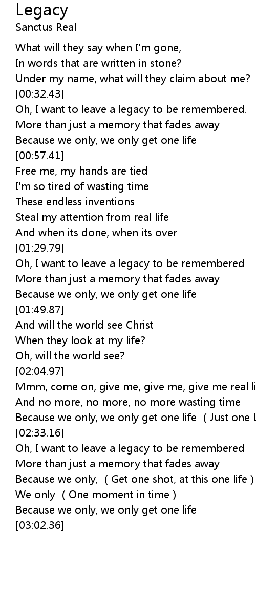| [01:30.43] | Oh, I want to leave a legacy to be remembered |