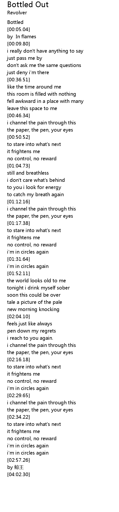 | [02:26.18] | i' m in circles again |