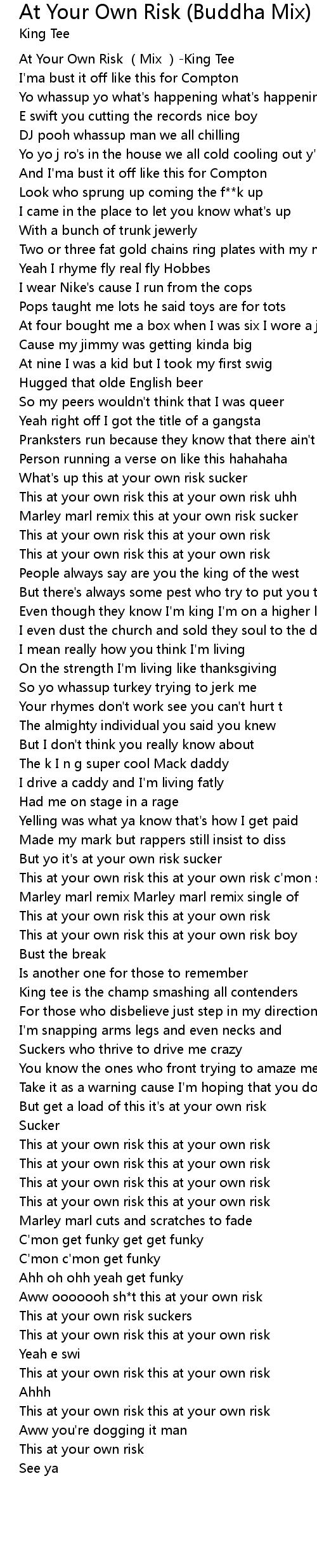 | [00:00.00] | At Your Own Risk (Mix )-King Tee |