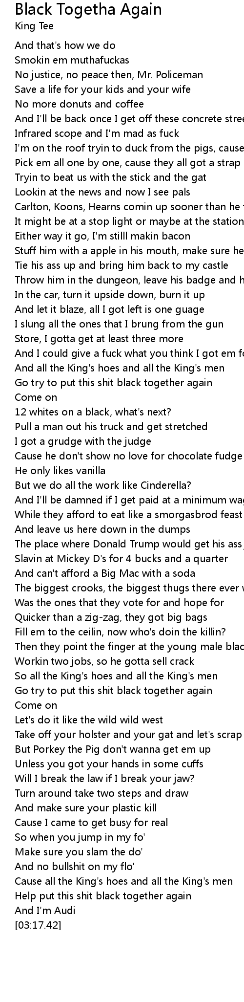 Cause all the King's hoes and all the King's men |