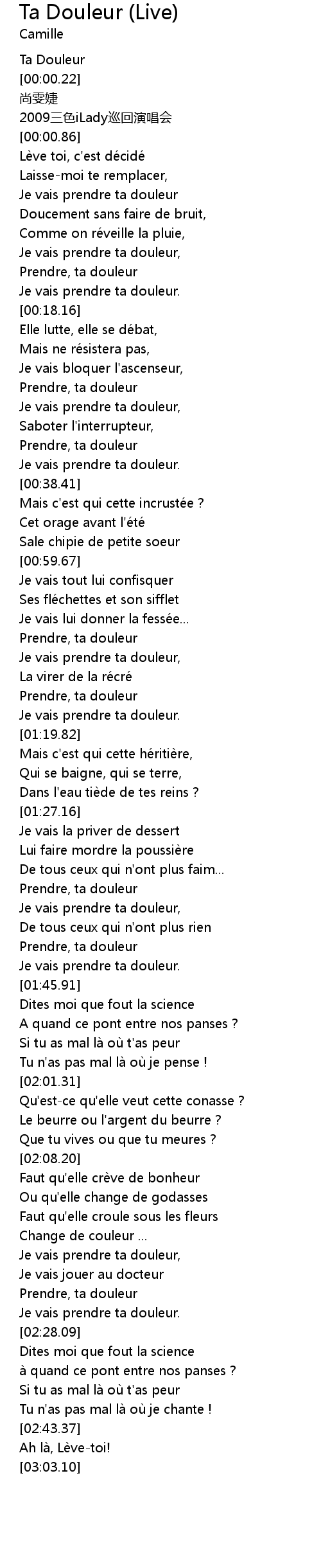 | [02:22.70] | Prendre, ta douleur |