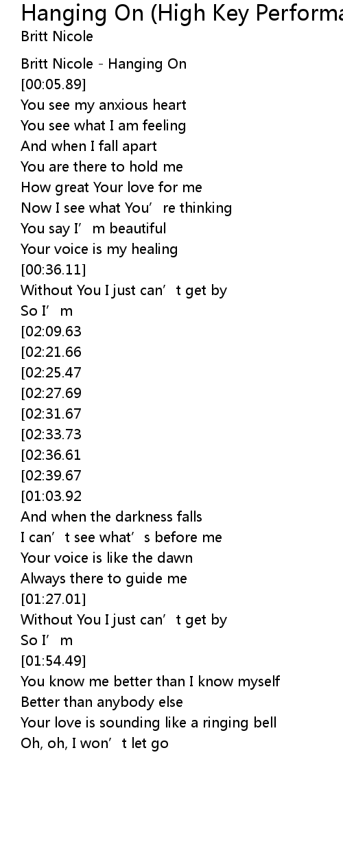 | [00:01.12] | Britt Nicole Hanging On |