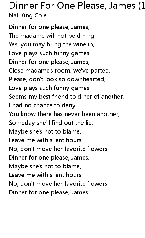 Dinner for one please, James, |