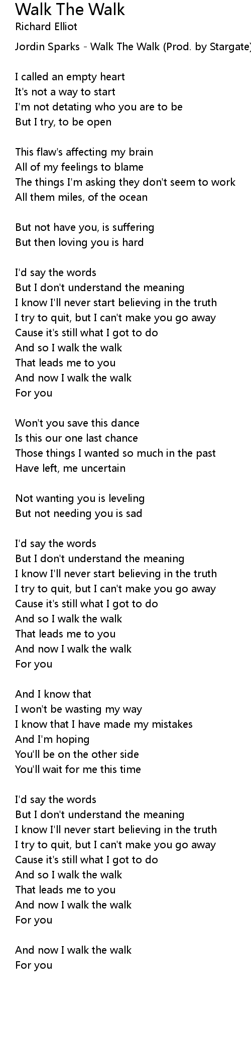 And now I walk the walk |