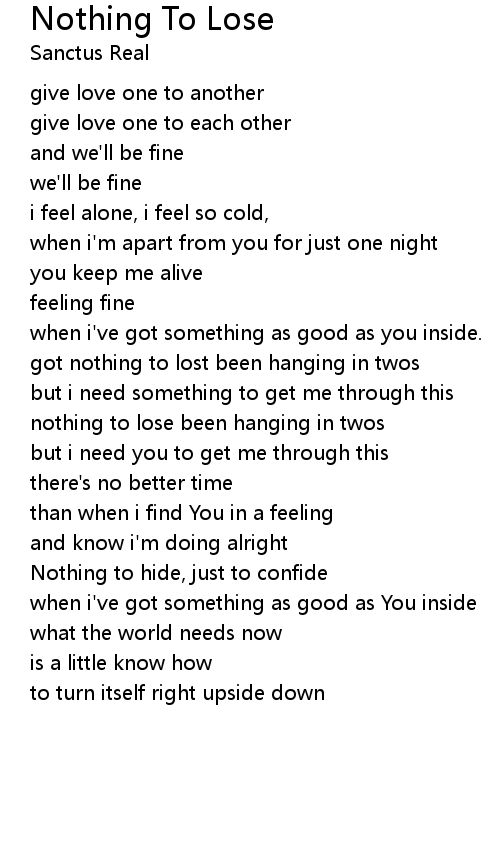 got nothing to lost been hanging in twos |