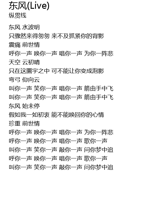 | [01:48.300] | dōng fēng shuǐ bō míng |
