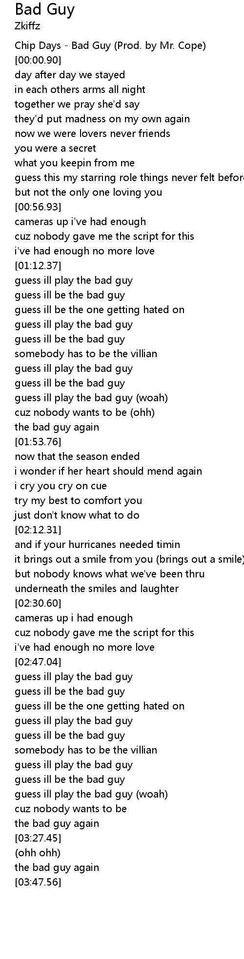 | [00:00.01] | Chip Days - Bad Guy (Prod. by Mr. Cope) |