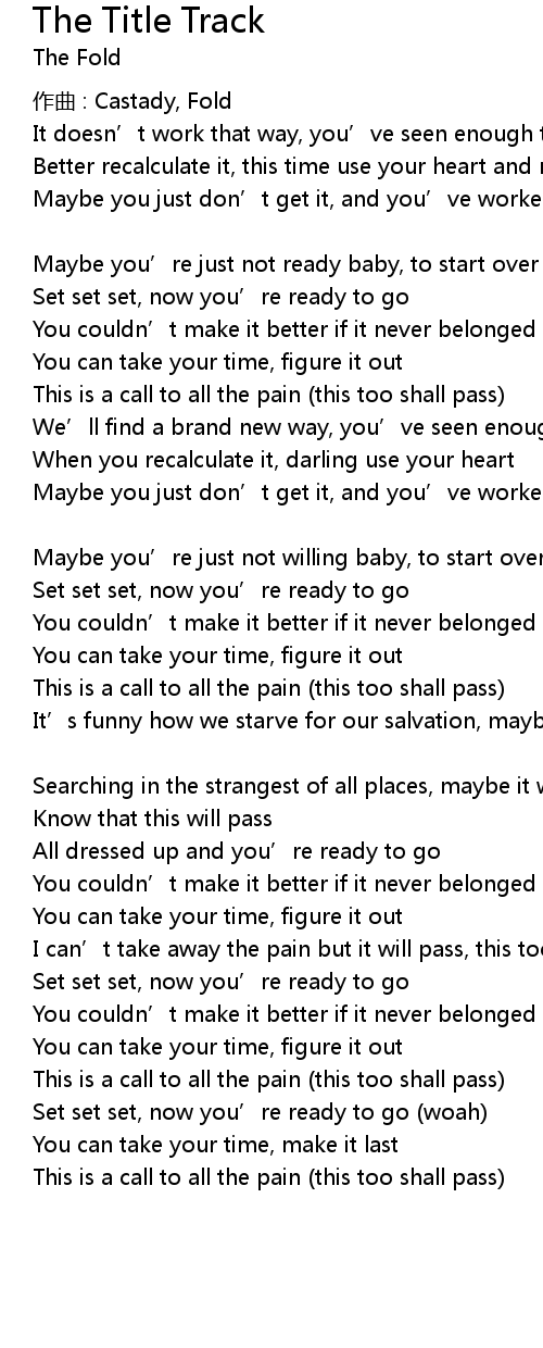 | This is a call to all the pain this too shall pass |
