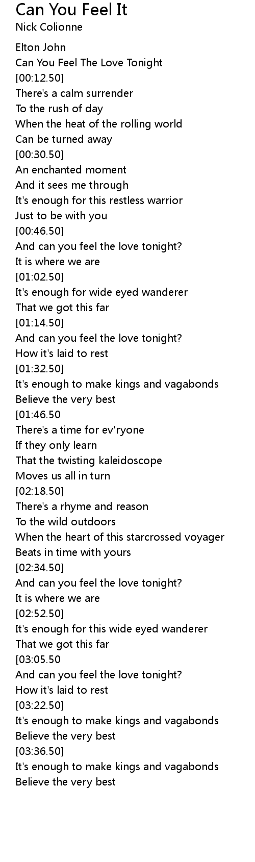 And can you feel the love tonight? |