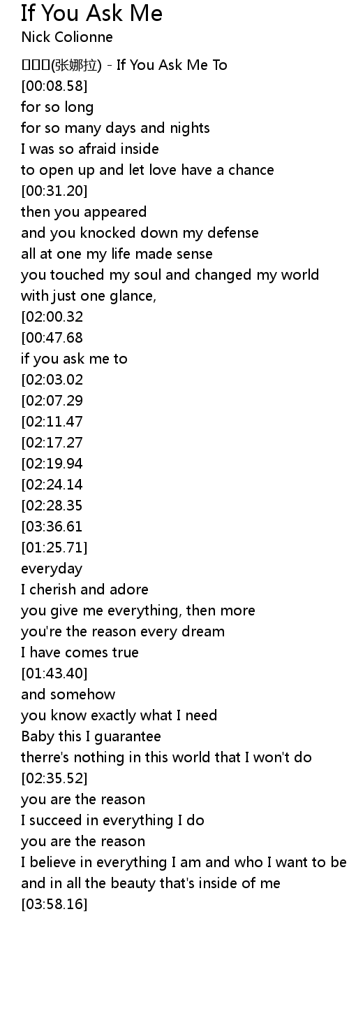 | [00:01.80] | zhāng nà lā If You Ask Me To |