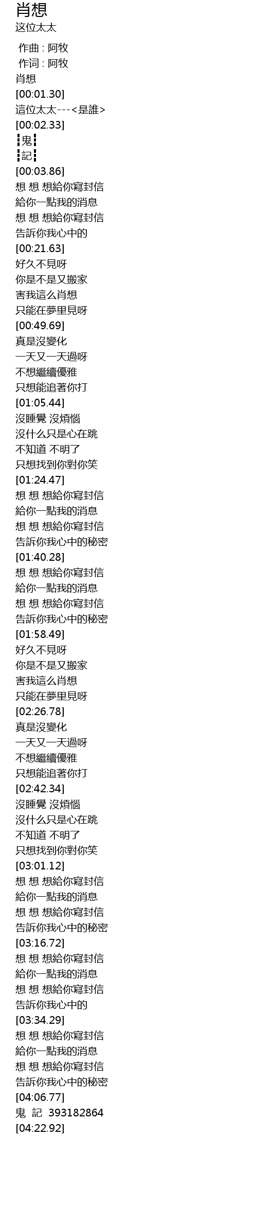 | [00:04.34] | xiǎng xiǎng xiǎng gěi nǐ xiě fēng xìn |