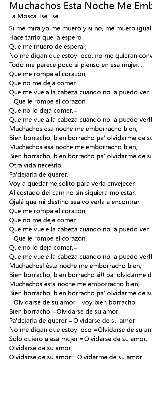 | Bien borracho, bien borracho pa' olvidarme de su amor. | |