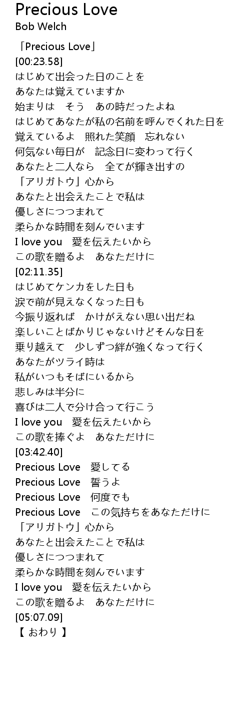 | [00:01.58] | 「Precious Love」 |