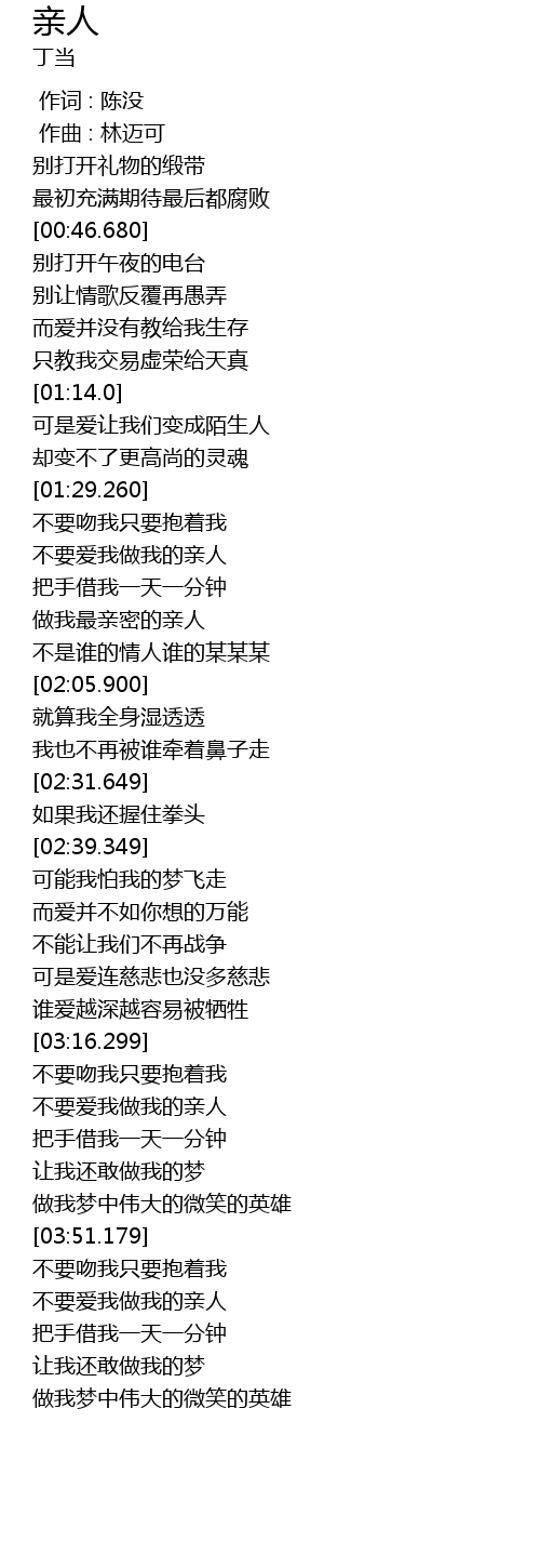 | [01:41.20] | bú yào ài wǒ zuò wǒ de qīn rén |