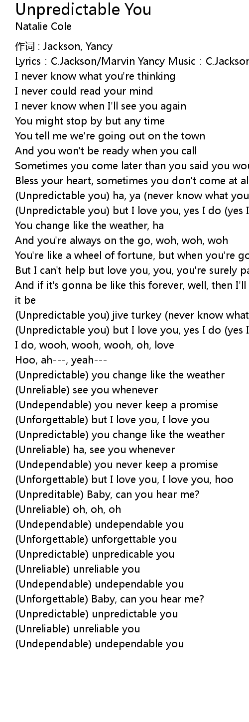 | Unpredictable you jive turkey never know what you' ll do yeah, yeah | |