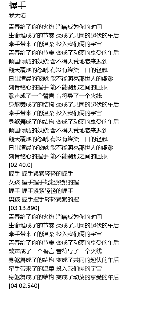 | [02:51.100] | 握手 握手紧紧轻轻的握手 |
