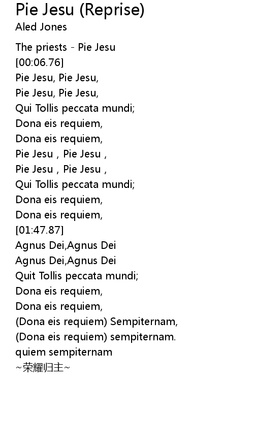 | [00:15.43] | Pie Jesu, Pie Jesu, |
