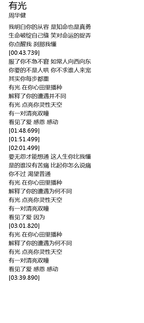 | [01:39.199] | 看见了爱 感恩 感动 |