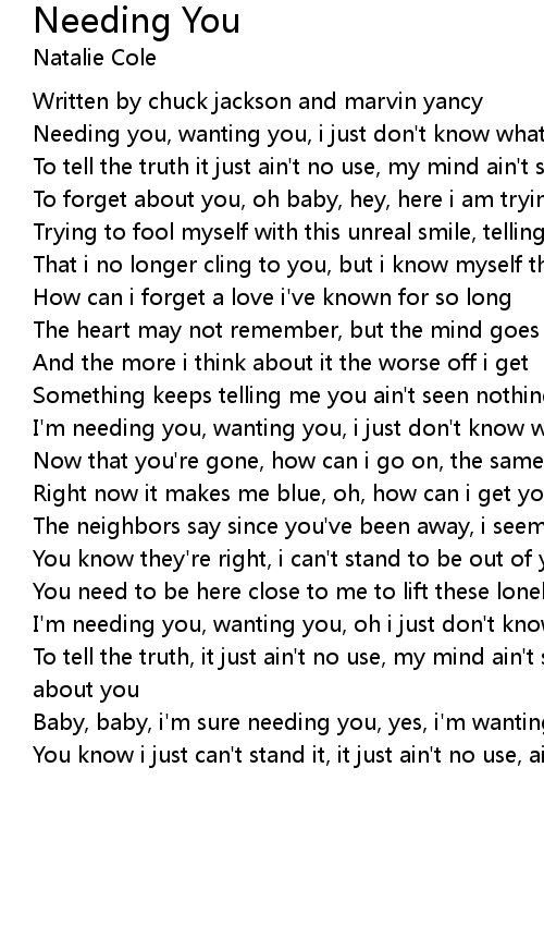 I'm needing you, wanting you, oh i just don't know what i'm gonna do, ooh, no |