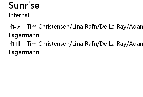 | [00:00.000] | 作词 : Tim Christensen/Lina Rafn/De La Ray/Adam Powers/Pau Lagermann |