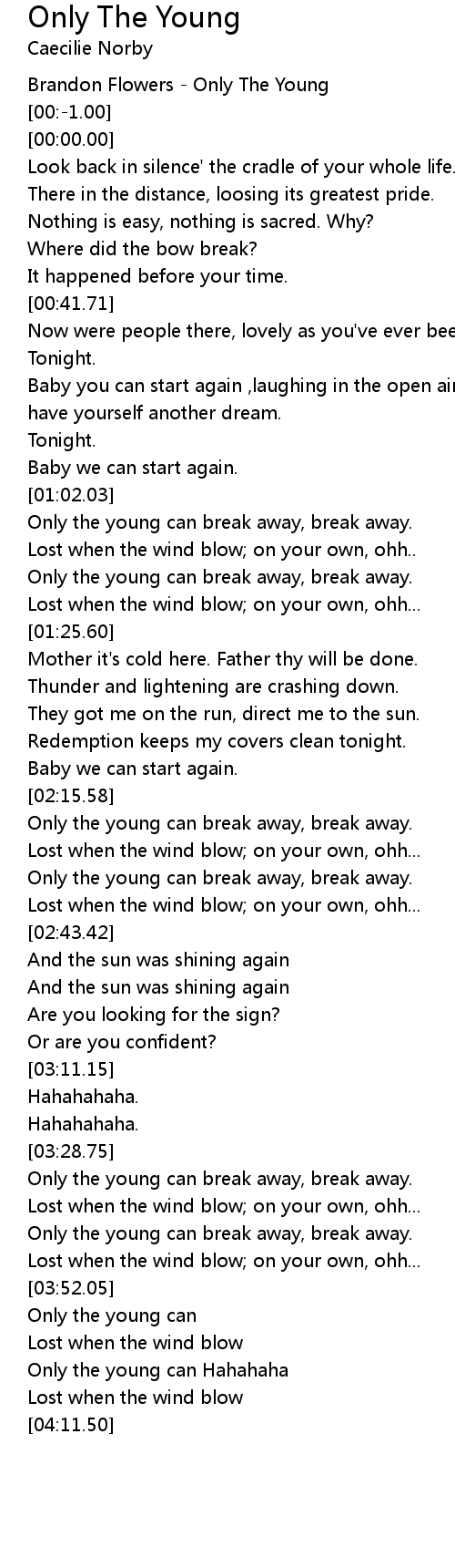 Only The Young Lyrics
