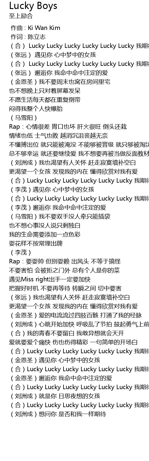 | [02:57.180] | hé Lucky Lucky Lucky Lucky Lucky Lucky wǒ qī dài |