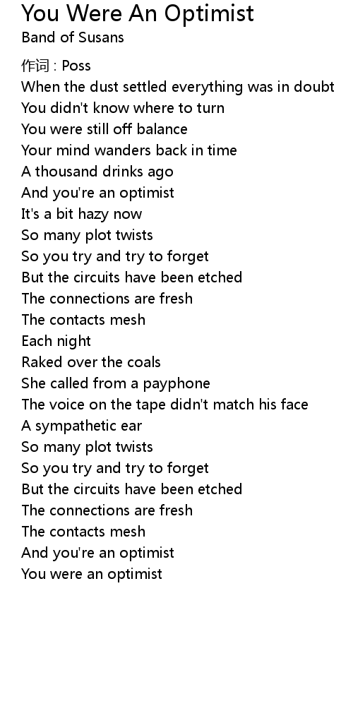 | Song | You Were An Optimist |