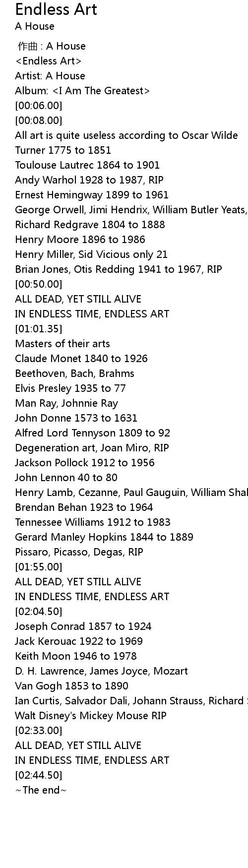 | [02:40.00] | IN ENDLESS TIME, ENDLESS ART |