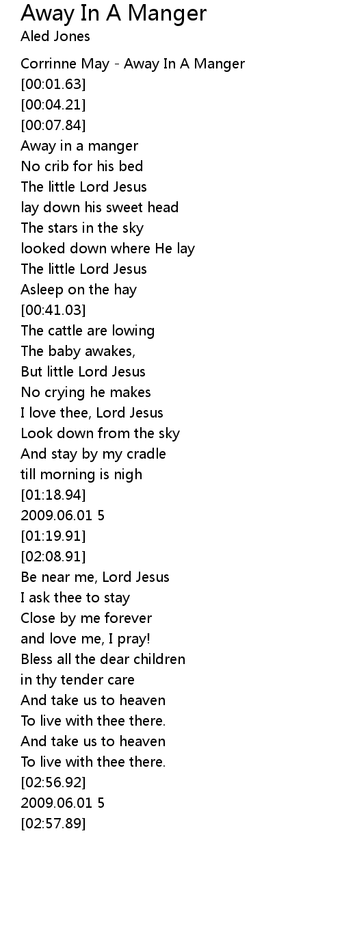| [00:00.82] | Corrinne May - Away In A Manger |