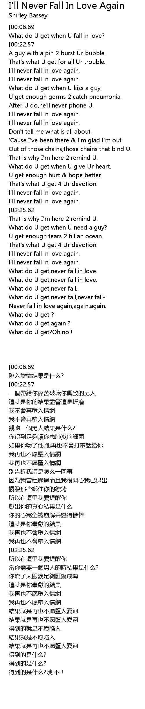 What do U get,never fall in love. |